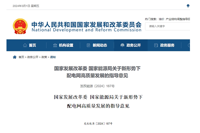 國家發(fā)展改革委 國家能源局關(guān)于新形勢(shì)下配電網(wǎng)高質(zhì)量發(fā)展的指導(dǎo)意見