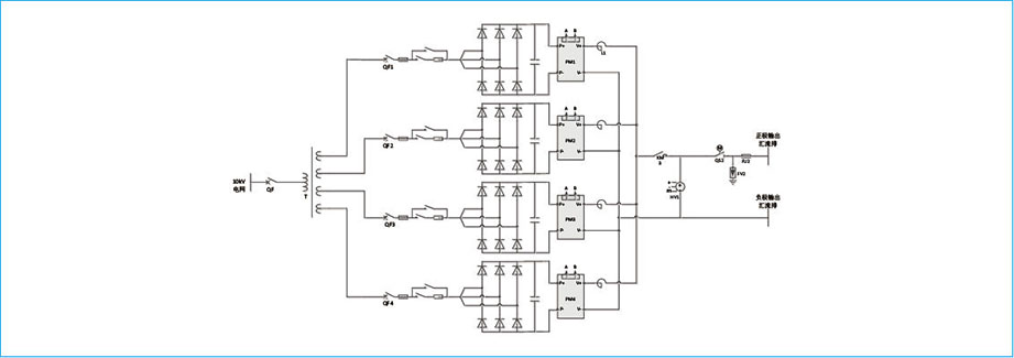 額定輸入電壓為AC10kV,經(jīng)過交流開關(guān)柜、整流變壓器、低壓斷路器、輸入熔斷器、主接觸器、輔助接觸器、軟啟動(dòng)電阻,經(jīng)過AC/DC整流器,再經(jīng)過DC/DC變流器、輸出接觸器、單極電動(dòng)隔離開關(guān)、輸出熔斷器給車載超級(jí)電容充電。